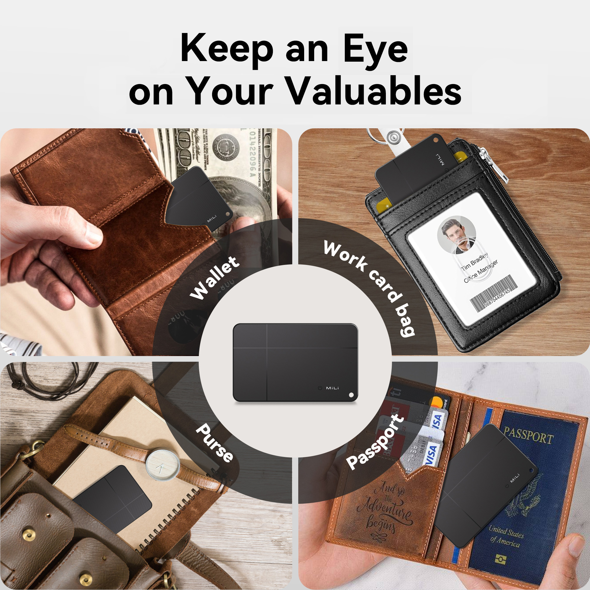 Endast 2,5 mm tunn, vilket gör den perfekt att bära i plånboken eller fästa på prylar du inte vill tappa bort.